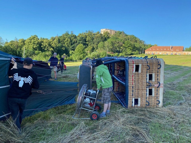Posádka balón nachystá k letu, pasažéři mohou s přípravou pomáhat. Pilot poučí pasažéry o chování při letu a po nastoupení do koše nastává odlet. Obvyklá doba letu je jedna hodina, délka letu závisí na rychlosti větru, většinou uletíme vzdálenost 10–15 km vzdušnou čarou. Po přistání jsou pasažéři slavnostně pokřtěni a pilot jim vystaví pamětní list. Pozemní doprovod, který sledoval balón během letu, naloží pasažéry a techniku a dopraví vše na místo startu nebo podle domluvy.