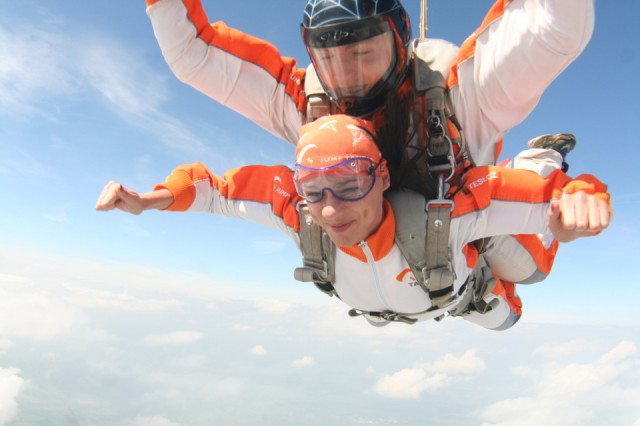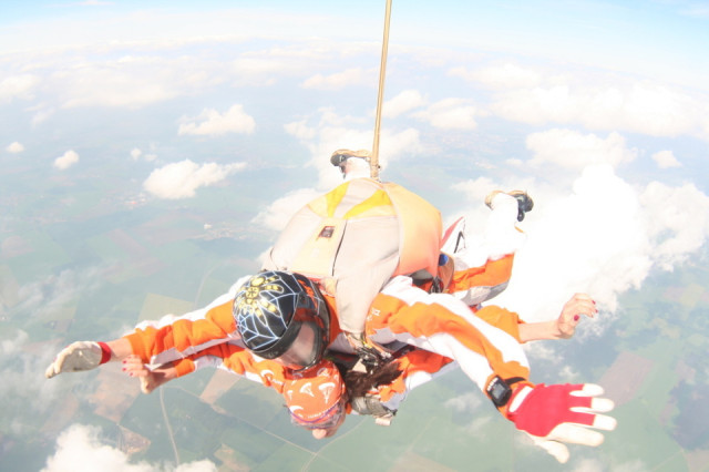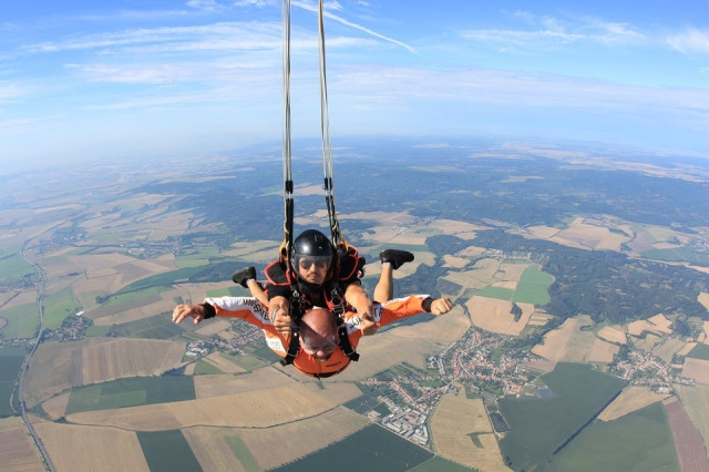 Tandemový seskok může absolvovat kdokoli, kdo netrpí epilepsií, cukrovkou nebo závažnou srdeční chorobou.
