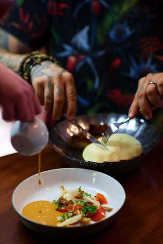 Dvouchodové večeře obsahují polévku a hlavní chod. Vybírá se z jídelního lístku. Nápoje nejsou v ceně večeře.